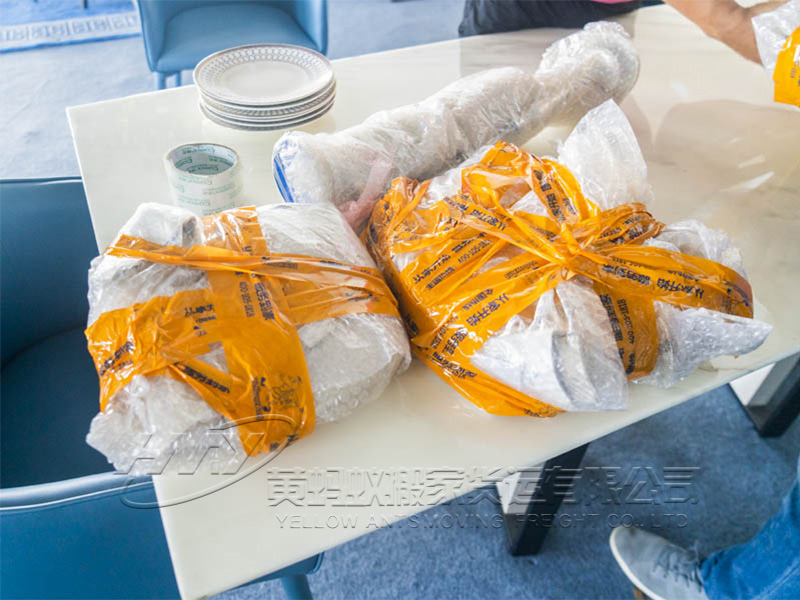 物品都是第一層用白紙打底防止物品被刮花,第二層會用防震材料,如氣泡膜做防震處理,第三層會用硬紙板裁剪打包。