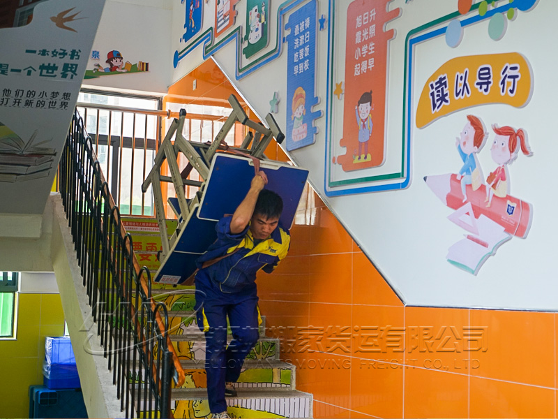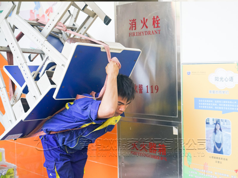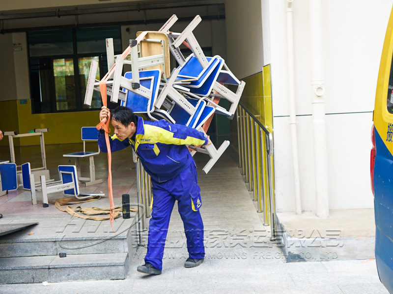 工作人員提前準備了搬運承重帶、打包氣泡膜、紙箱等搬家工具和搬家輔材,在現場負責人的指導下,技術人員實施具體搬遷工作。此次搬遷服務涉及到學校課桌椅等物品,所有搬運技術員遵循小心輕放的原則,防止磕碰以保證物品的完整性。