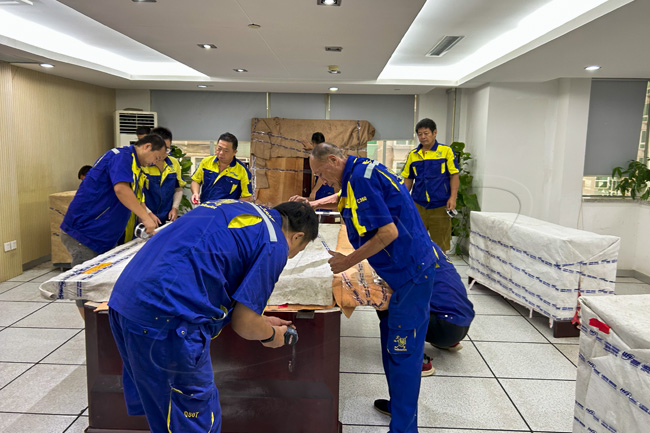 公司派出專業(yè)搬家車輛10輛和20多名專業(yè)的搬運(yùn)技術(shù)員、駕駛員、打包技術(shù)員,工作人員提前準(zhǔn)備了托運(yùn)設(shè)備、打包工具等輔助材料,在經(jīng)過現(xiàn)場管理干部安排部署后,員工們迅速開展作業(yè)起來。
